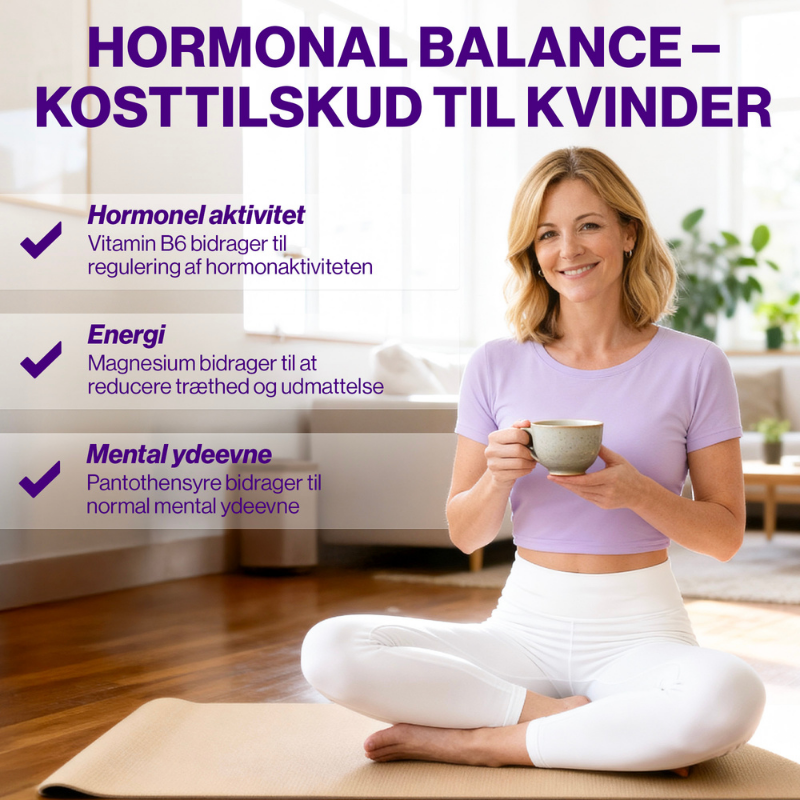 - Vitamin B6 bidrager til at regulere hormonaktiviteten.