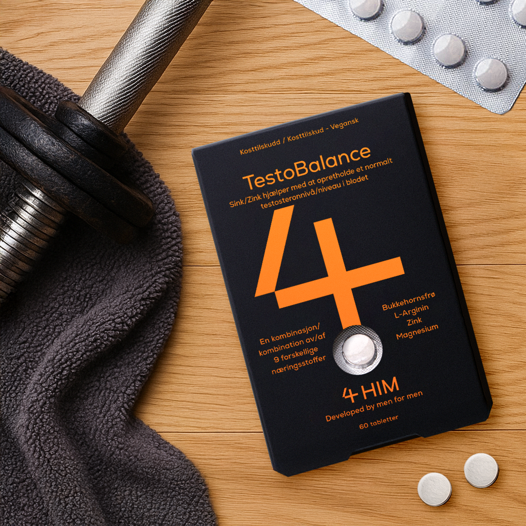 4HIM TestoBalance støtter testosteron, energi, muskler og immunforsvar med zink, magnesium, vitamin D, B6, selen og planteekstrakter. Kvalitetssikret kosttilskud.