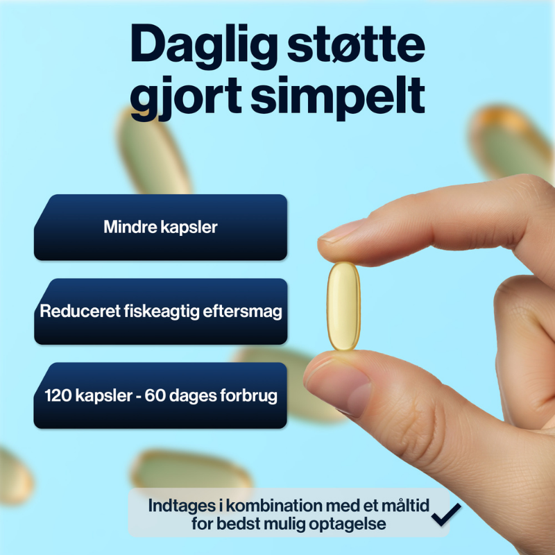 - Høj koncentration med 80 % aktive fedtsyrer.