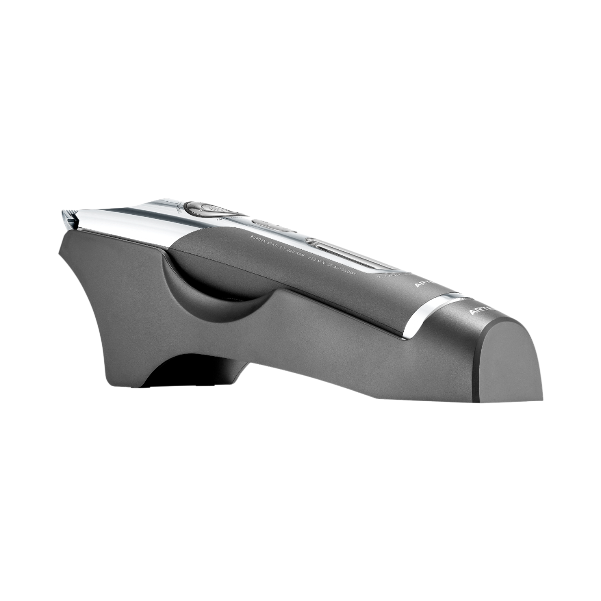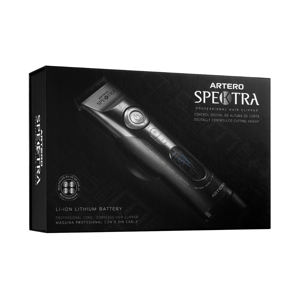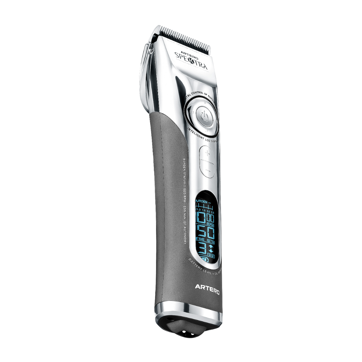 Professionel og kraftfuld klippemaskine med Lithium batteri med op til 4 timers batteritid. Ladetid: 180 min. Elektronisk justerbart klippehoved, som kan indstilles fra 1mm op til 1,9mm. Skærets bredde er 4,5 cm. Stort display med tydelige informationer om millimeter indstillinger, hastighed, batteritid og batteriniveau. Medfølger: Ladestander, olie, lille rengøringsbørste og 8 afstandskamme 3, 6, 9, 12, 15, 21 og 25mm