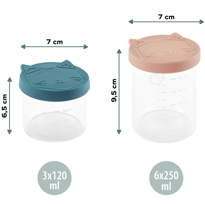 Hvis du har lavet puré, kompot eller lignede til dit barn, vil du selvfølgelig opbevare det på den bedst mulige måde. ISY opbevaringsglas lavet af borosulikatglas giver en sund og nem måde at opbevare din babys måltider på. Sættet indeholder 6 glas af 250ml og 3 glas af 120ml.