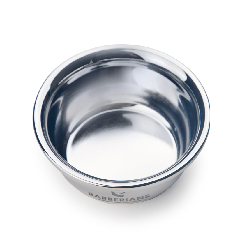 BARBERSKÅL I STÅL Barberians Cph Barberskål (Stål) (1 stk) er en barberskål i stål, der er velegnet til at lave en barberskum. Klargør din hud til barbering af Barberians Shaving Cream og vand i Barberians Cph Barberskål. Skummen kan påføres på huden med Barberians Shaving Brush.