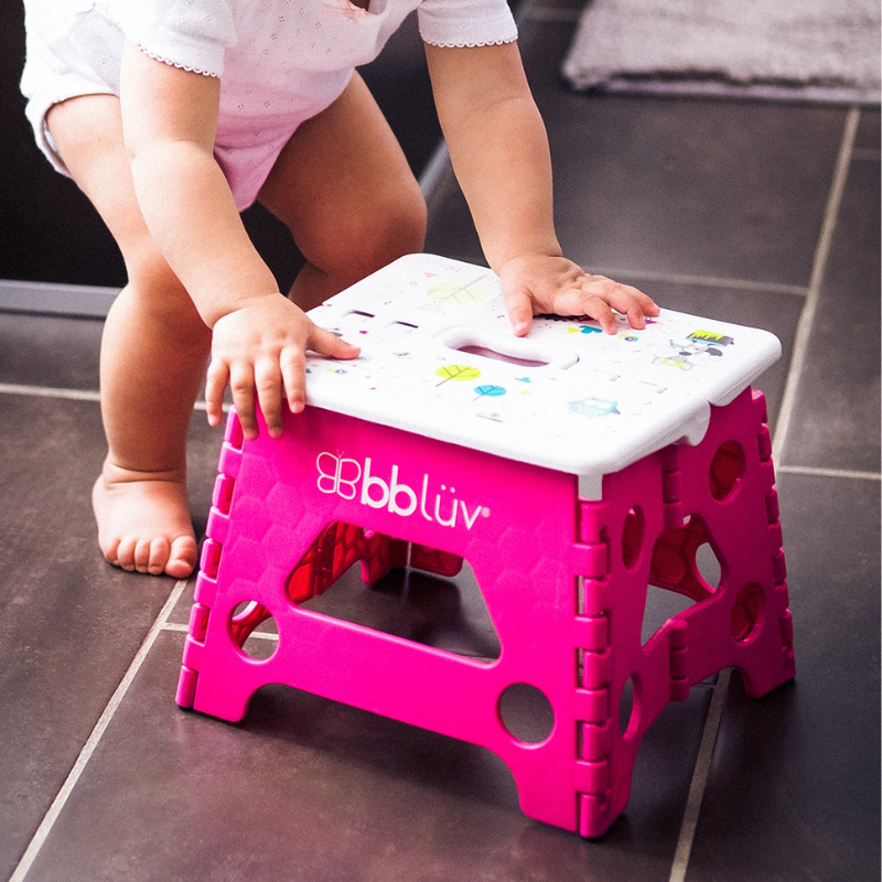 BBLüv Badeværelsesskammel Sammenklappelig Barn hjælper små børn med at nå områder, der stadig er lidt for høje. Badeværelsespuffen er praktisk, nem at bære og nem at folde sammen.