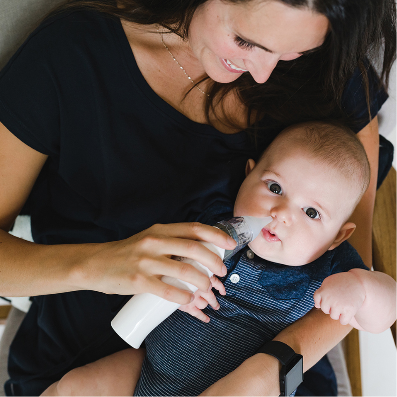 BBLüv Elektrisk Næsesuger er en batteridrevet næsesuger, der forsigtigt fjerner overskydende snot og slim, når dit barn har en løbende næse, uden at irritere næseborene. Næsesugeren giver et kontinuerligt, skånsomt sug, der er sikkert for nyfødte, spædbørn og småbørn.