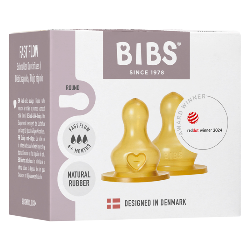 Bibs Baby Bottle Nipple Round Latex Fast Flow (1 sæt)