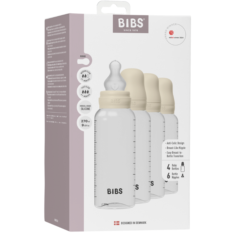 Bibs Baby Bottle Round Silicone 270 ml Ivory (4 stk)