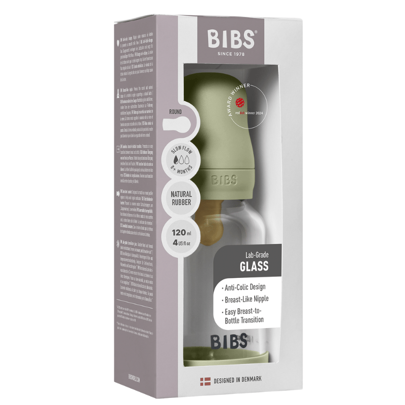 Bibs Glass Baby Bottle Round Latex Slow Flow Sage (120 ml)