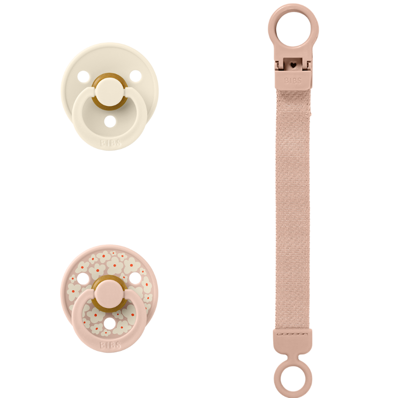 Bibs Colour Pacifier & Loop Clip Gift Set Latex Size 1 Blush (1 sæt)