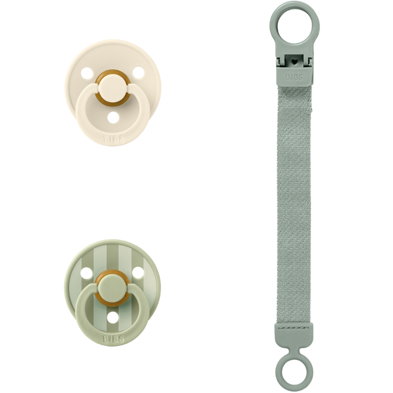Bibs Colour Pacifier & Loop Clip Gift Set Latex Size 1 Sage (1 sæt)
