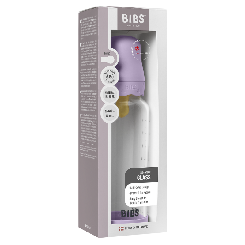 Bibs Glass Boheme Baby Bottle Round Latex Medium Flow Violet Sky (240 ml)