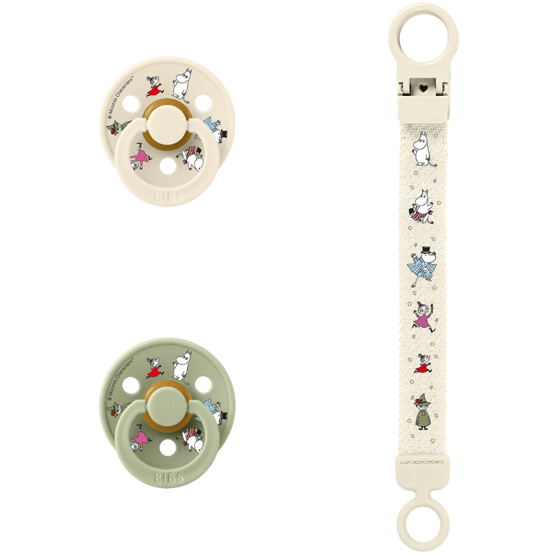 Bibs X Moomins Colour Pacifier & Loop Clip Gift Set Latex Size 2 Ivory/Sage (1 sæt)