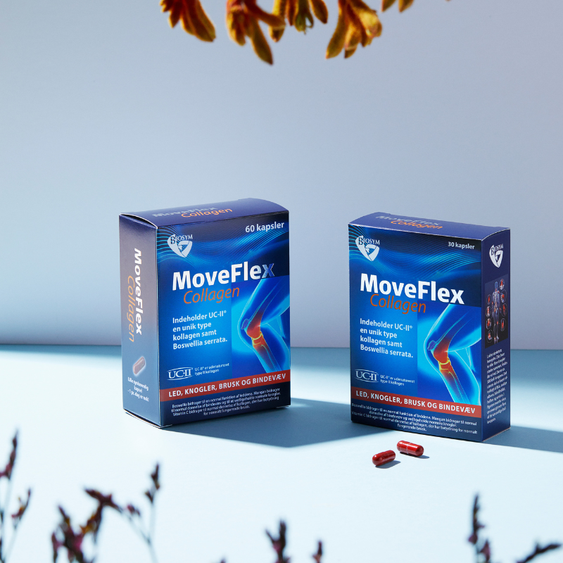 Biosym MoveFlex Collagen støtter led, brusk og knogler med UC-II kollagen, C-vitamin og Boswellia. Bevar smidighed, styrke og fri bevægelse.