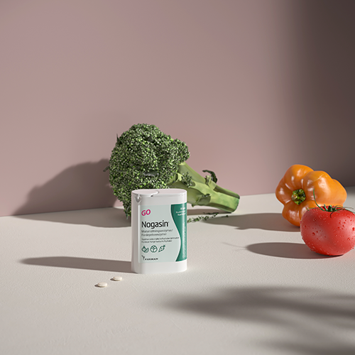 Biosym Nogasin GO er tyggetabletter med alfa-galaktosidase, der naturligt reducerer oppustethed efter fiberrige måltider.