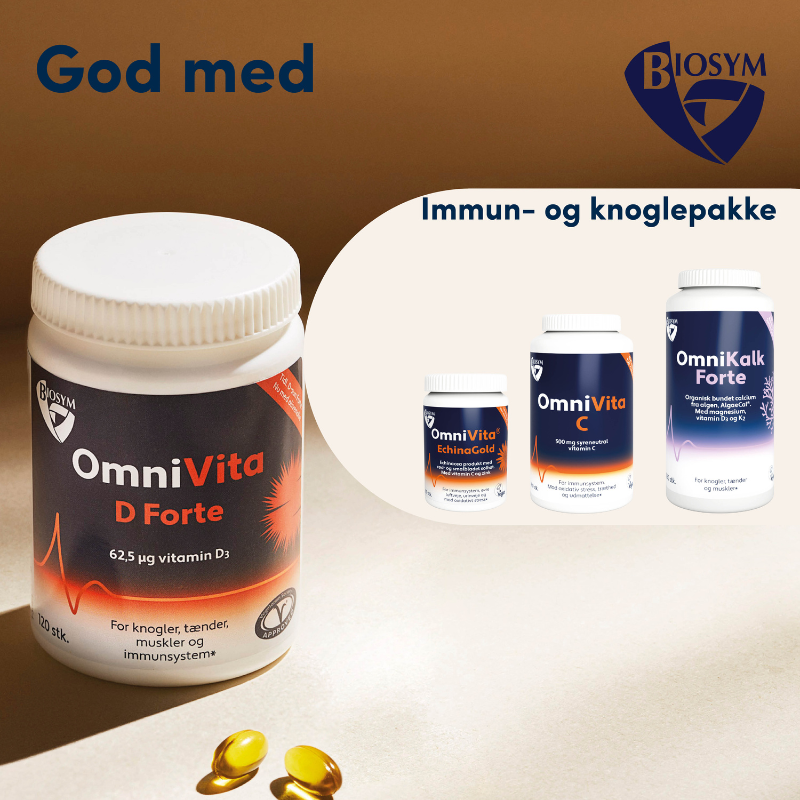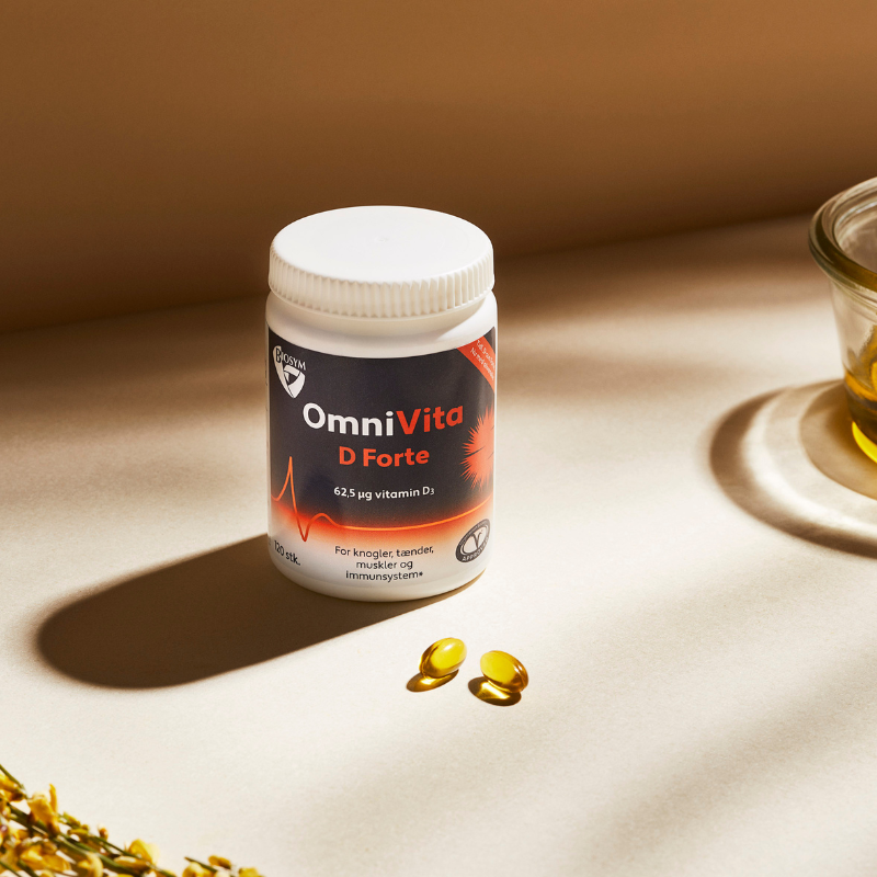 Få et effektivt tilskud af D3-vitamin med Biosym OmniVita D Forte. Bidrager til normale knogler, muskler og immunforsvar – helt plantebaseret og velegnet til en vegansk livsstil.