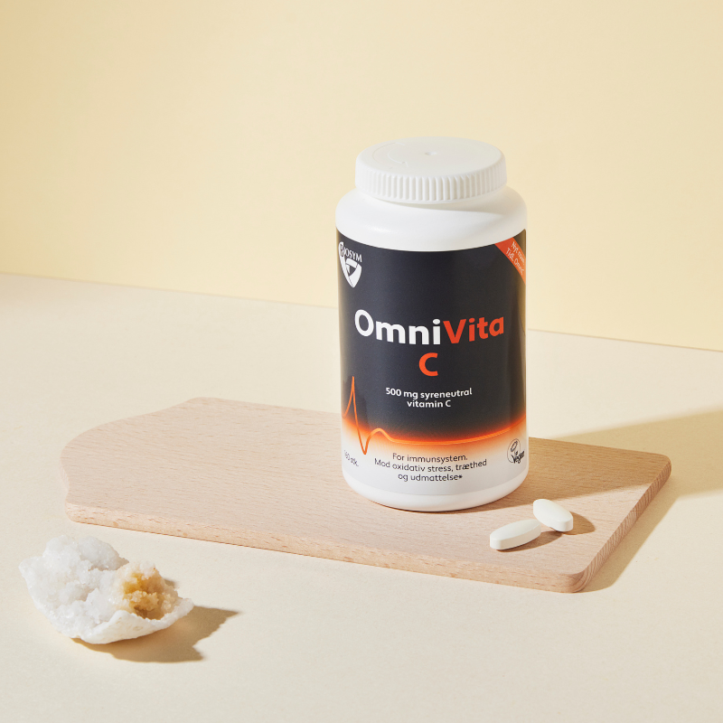 Biosym OmniVita C kombinerer C-vitamin, calcium og magnesium for immunforsvar, knogler og muskler. 100% vegansk, syreneutral og danskproduceret kvalitet.