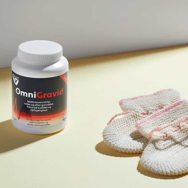 OmniGravid støtter kvinder før, under og efter graviditet med 25 næringsstoffer, bl.a. jern, folsyre og vitamin D. 100% vegansk.