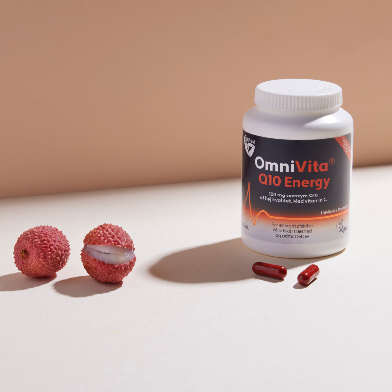 100 mg coenzym Q10 af høj kvalitet samt vitamin C, som bidrager til normal energistofskifte og mindsker træthed og udmattelse.