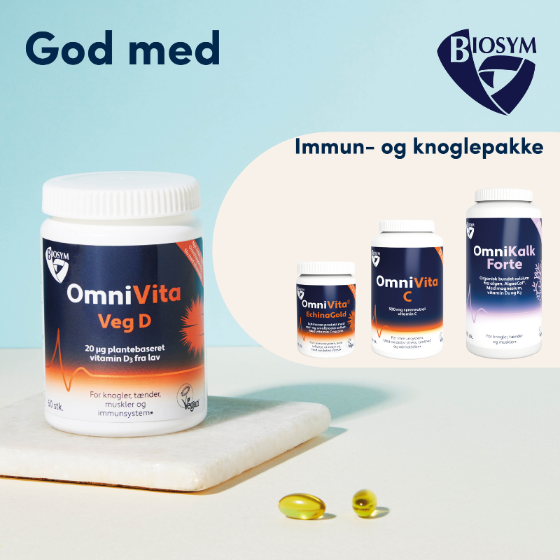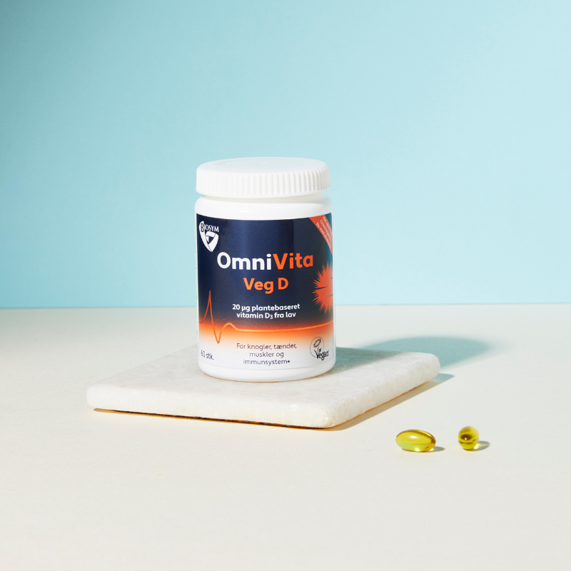 Biosym OmniVita Veg D er et 100% vegansk D3-tilskud fra lav, med høj optagelighed og støtte til knogler, muskler og immunforsvar.