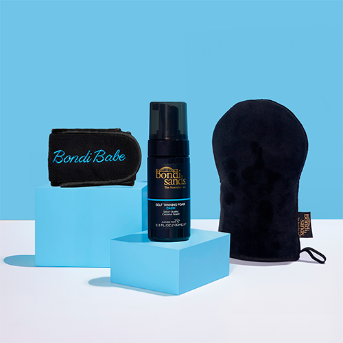 Et skønt selvbruner sæt med alt hvad du behøver til den perfekte selvbruner rutine. Indeholder Bondi Sands Self Tanning dark foam 100 ml, Selvbrunerhandske samt hårbånd.