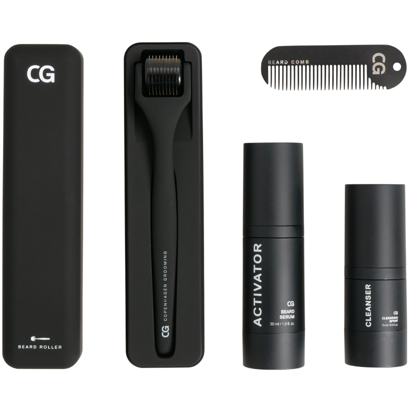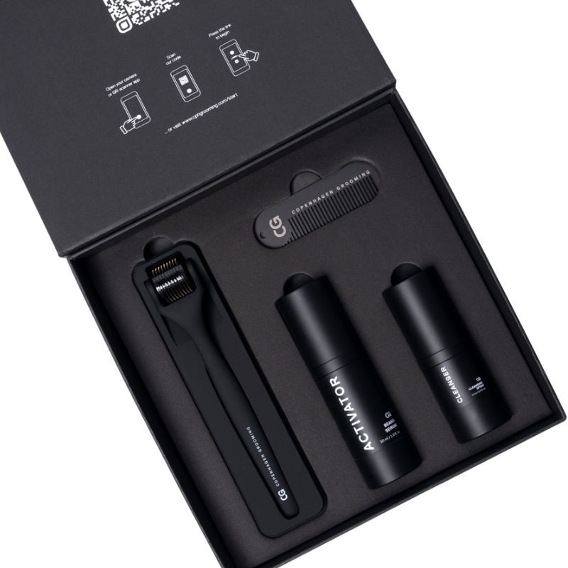 Boost skægvækst med aktivt serum og roller. Udviklet i Danmark, vegansk og fri for parfume.
