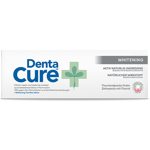 Effektiv og naturlig tandpasta med whitening effekt mod blødende tandkød og tandkødsbetændelse. Med naturligt aktivt ekstrakt af bukkehornsfrø, som er dokumenteret antiinflammatorisk og bekæmper skadelige bakterier, der kan forårsage tandkødsproblemer.