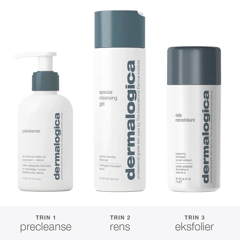 3 x full-size produkter - (Samlet værdi kr. 1.365,00) SÆT MED TRE BESTSELLER PRODUKTER Sættet indeholder 3 produkter: en dybderensende olie, en skummende renseprodukt og et lysnende eksfolieringspulver.