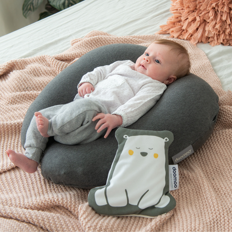Doomoo Amningspude er en ultrablød og ergonomisk amningspude, der passer både til den lille og den store. Puden anbefales af amningsjordemødre for sit professionelle design. Med Doomoos amningspude får moren korrekt støtte til skuldre, ryg og arme, samtidig med at barnet får den rette ammeposition.