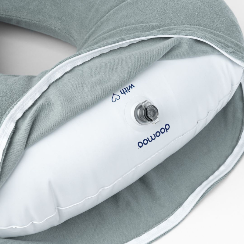 Doomoo Amningspude Oppustelig er en lille og praktisk amningspude, som nemt kan pustes op. Amningspuden er ultralet og kompakt og kan nemt tages med overalt takket være den medfølgende taske.