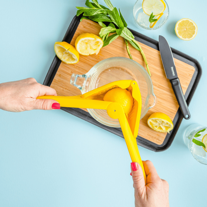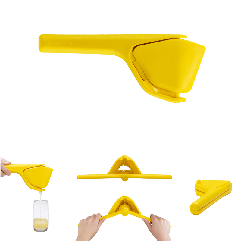 Fluicer fra Dreamfarm er en manuel citruspresser, der fås i tre forskellige størrelser, - til lime, citron eller appelsin. Designet så de større muskelgrupper i dine arme skal anvendes i stedet for hænderne, hvilket kræver færre kræfter end en traditionel citruspresser. Den specialdesignede mekanisme presser frugten på midten fra siderne, lige som at presse frugt med hænderne, hvilket kræver mindre kraft end at presse frugten flad som traditionelle pressere. Den indbyggede kerneopsamler giver ekstra kontrol ved at fungere som en tragt, og dirigerer juicestrømmen ind i et glas eller en lille skål. Udarbejdet i et slimline design, så Fluicer kan foldes helt fladt efter brug, så den nemt passer i skuffen. Materiale er polypropylen og rustfrit stål. Tåler opvaskemaskine. BPA fri. Medium mål: 250x104x30.