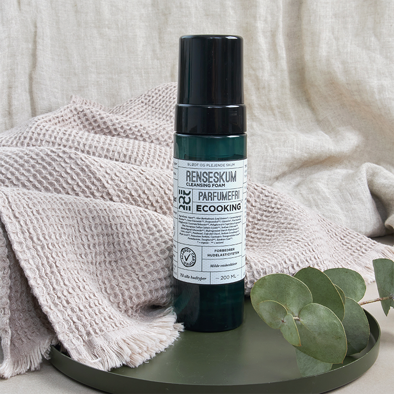 En renseskum fra Ecooking's 50+ serie, som renser, plejer og fornyer huden med plantestamceller og andre lækre ingredienser.