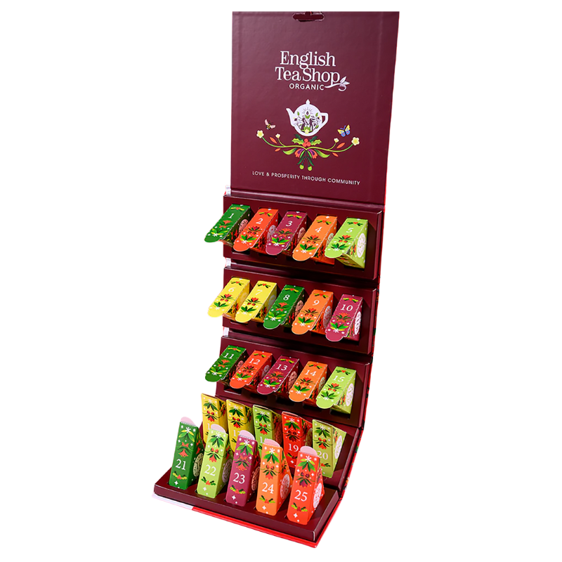 English Tea Shop væg julekalender. Økologisk julekalender med 25 teposer. Smuk julepynt og en perfekt julegaveidé til teelskere.