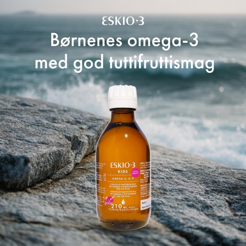 Bidrag til en normal hjertefunktion hos dit barn med Eskio-3 Kids. Den børnevenlige tutti-frutti smag gør det let at tilføje et tilskud af fiskeolie, rapsolie samt D- og E-vitamin, som en del af en sund hverdag.