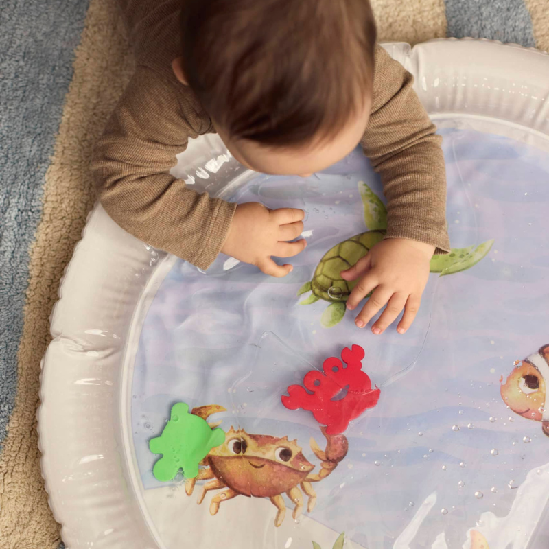 Forestil dig glæden ved, at dit barn opdager en verden under bølgerne. FILIBABBAs vandlegemadras inviterer babyer til et fortryllende undervandseventyr, hvor farverige havdyr svømmer gennem blide bølger. Det er et rum, hvor nysgerrigheden kan blomstre, og hvor mave-tid bliver en rejse fyldt med undren og opdagelse.