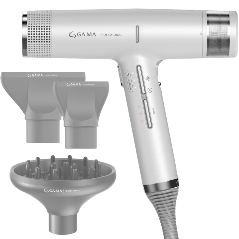 GA.MA IQ1 Professional Sølv er den perfekte kombination af kraft, lethed og intelligent design. Den giver dig mulighed for at opnå professionelle resultater i dit eget hjem, samtidig med at den passer på dit hår og sikrer en lang holdbarhed for produktet.