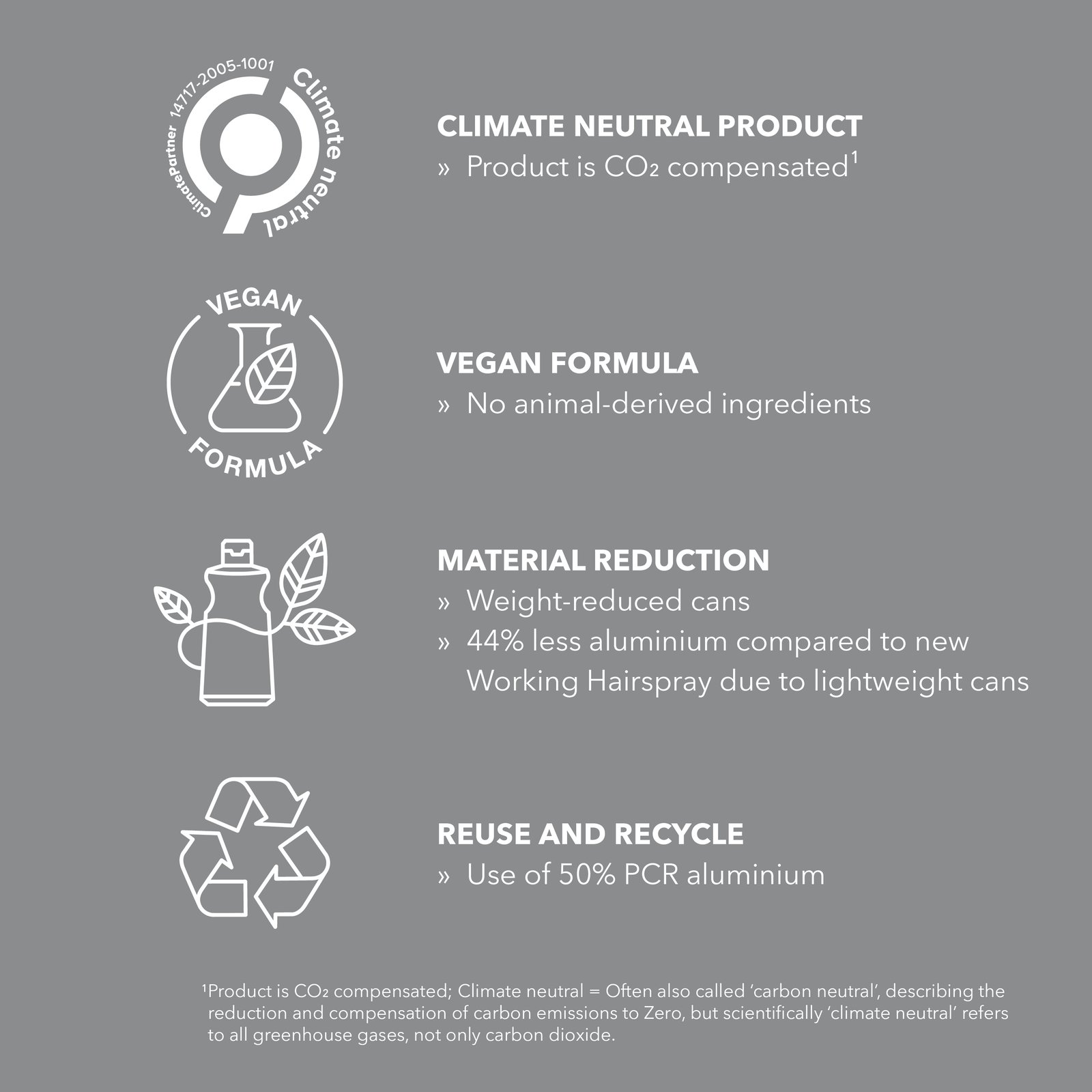 Mikrofin, målrettet spray, der giver øjeblikkeligt medium hold og intens glans samt beskyttelse mod fugt og krus i op til 72 timer. Koncentreret til at give det samme antal påføringer i halv størrelse.
