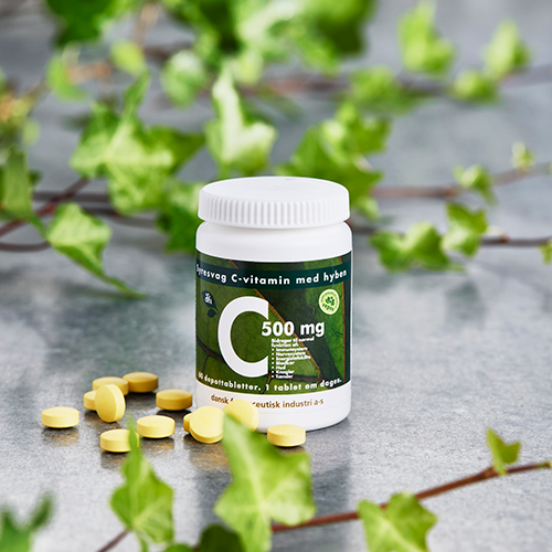 Grønne Vitaminer C-vitamin 500mg styrker energi, immunforsvar og beskytter celler. Rene, synkevenlige tabletter uden unødvendige tilsætningsstoffer – kvalitet fra DFI.