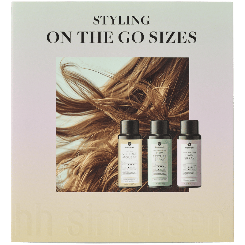 Opnå professionelt resultat derhjemme med HH Simonsens volumen- og stylingtrio. Sættet består af Volume Mousse, Dry Texture Spray og Hairspray – tre produkter, der tilsammen giver dig løft, struktur og langtidsholdbart hold, uden at håret bliver stift eller tungt.