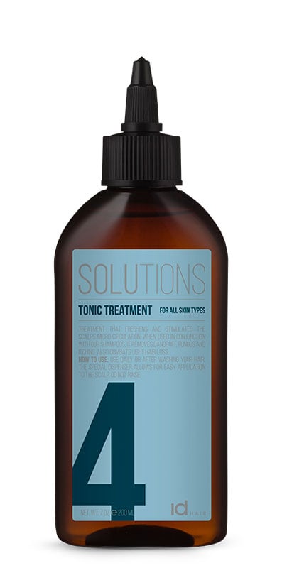 Id Hair Solutions 4 er en plejende tonic, der stimulerer cirkulationen i hovedbunden. Resultatet er en sundere hovedbund uden skæl og irritation.