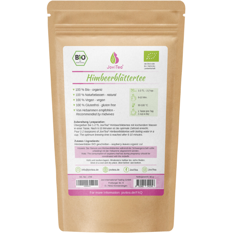 Økologisk Hindbærblad Te i BIO kvalitet med mild smag, skånsomt tørret og snittet. Uden kunstige smagsstoffer eller tilsætningsstoffer, smagsforstærkere eller farvestoffer. Pakket i lukke-pose, som beskytter teen mod lys