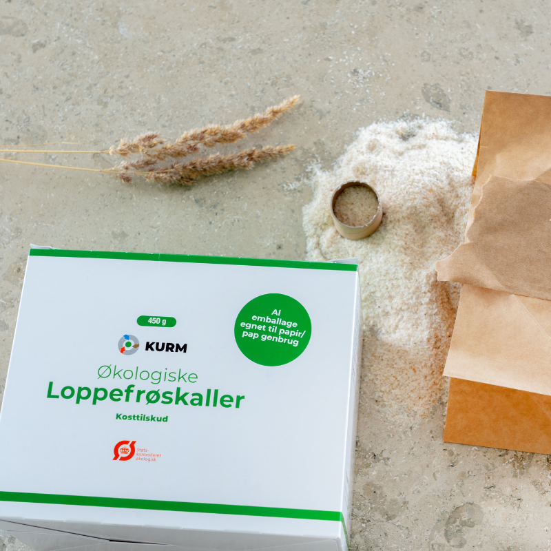 Emballage uden plast Loppefrøskaller kommer fra planten Plantago Ovata Forsk. og har et højt indhold af kostfibre.
