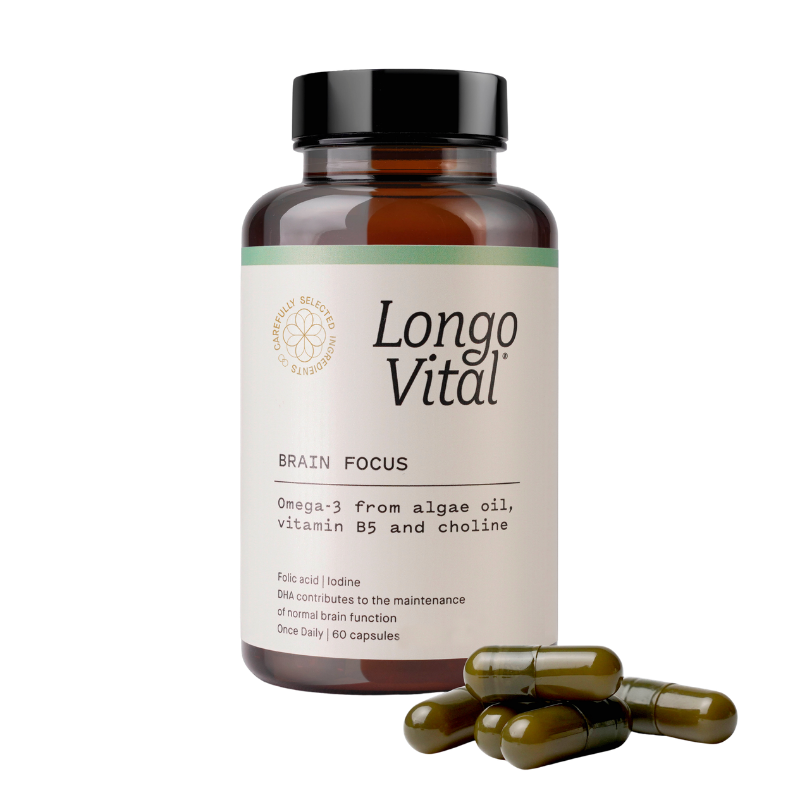 Longo Vital Brain Focus er udviklet med fokus på helhed, hvor en kombination af udvalgte næringsstoffer indgår.