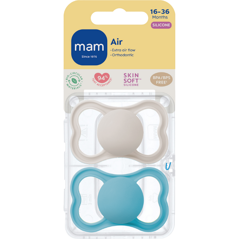MAM Air Sut Silicone Blue 16-36M (2 stk)