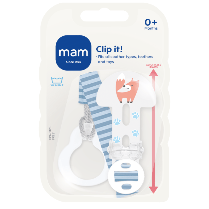 MAM har udviklet denne fine suttesnor, så dit barn altid har sutten lige ved hånden. Suttesnoren har en justerbar længde, så den kan tilpasses det lille barn.