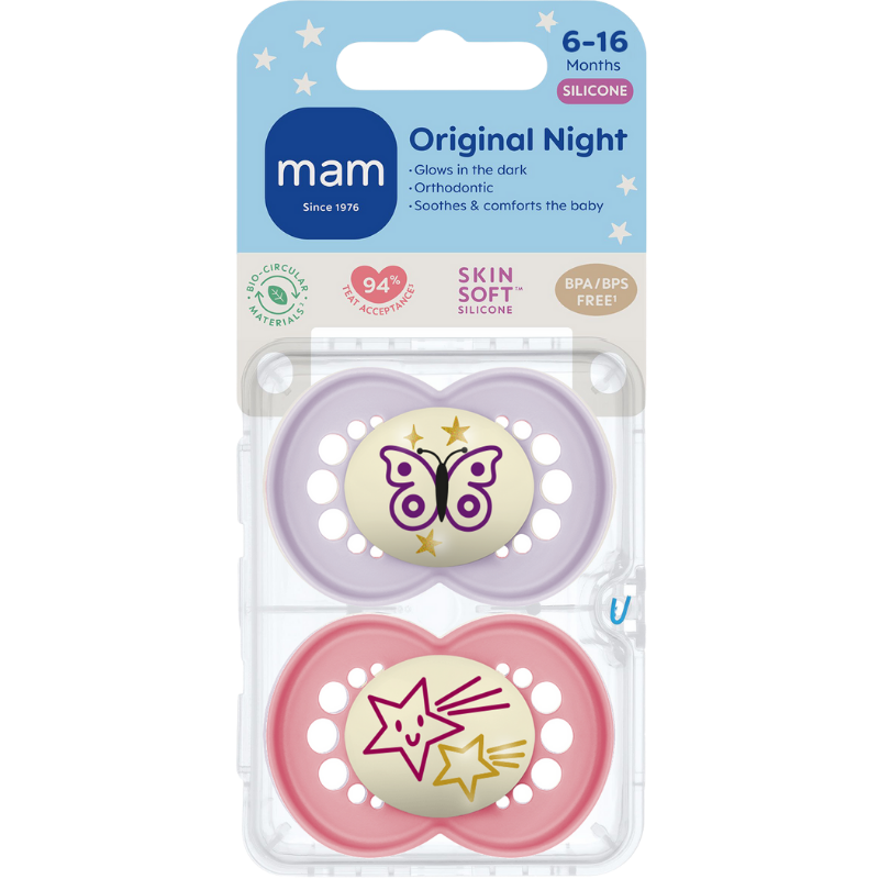 MAM Original Sut Night 6-16M Silicone Pink (2 stk)