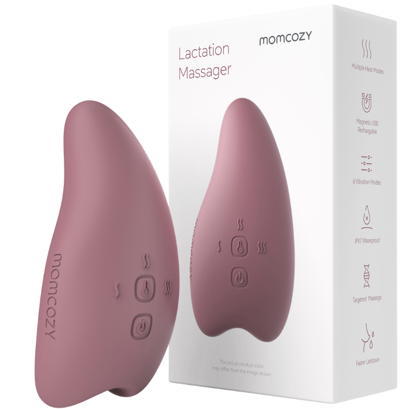 Momcozy Varmende og Vibrerende Amme Massager tilbyder 2-i-1 varme og vibration med 2 indstillinger og 6 intensitetsniveauer. Den lindrer smerter, forbedrer mælkeproduktionen og gør amning lettere og mere komfortabelt. IPX7 vandtæt for sikker brug overalt.