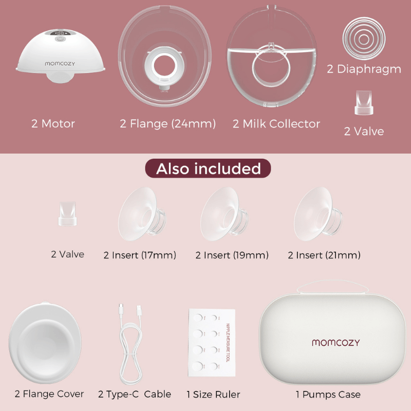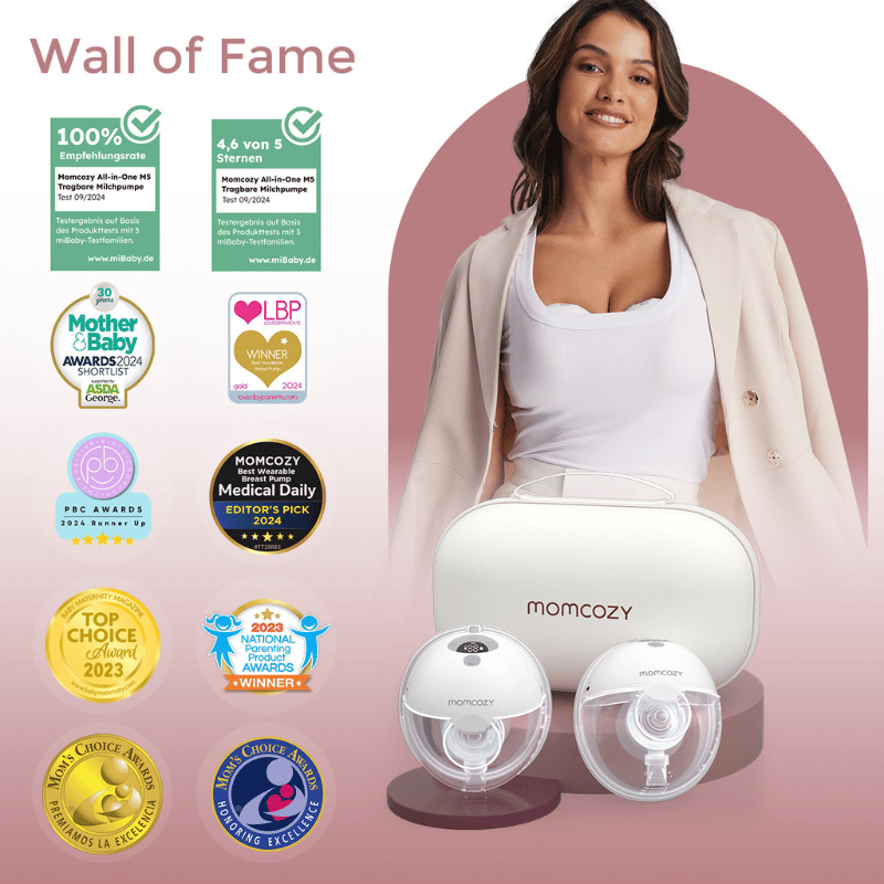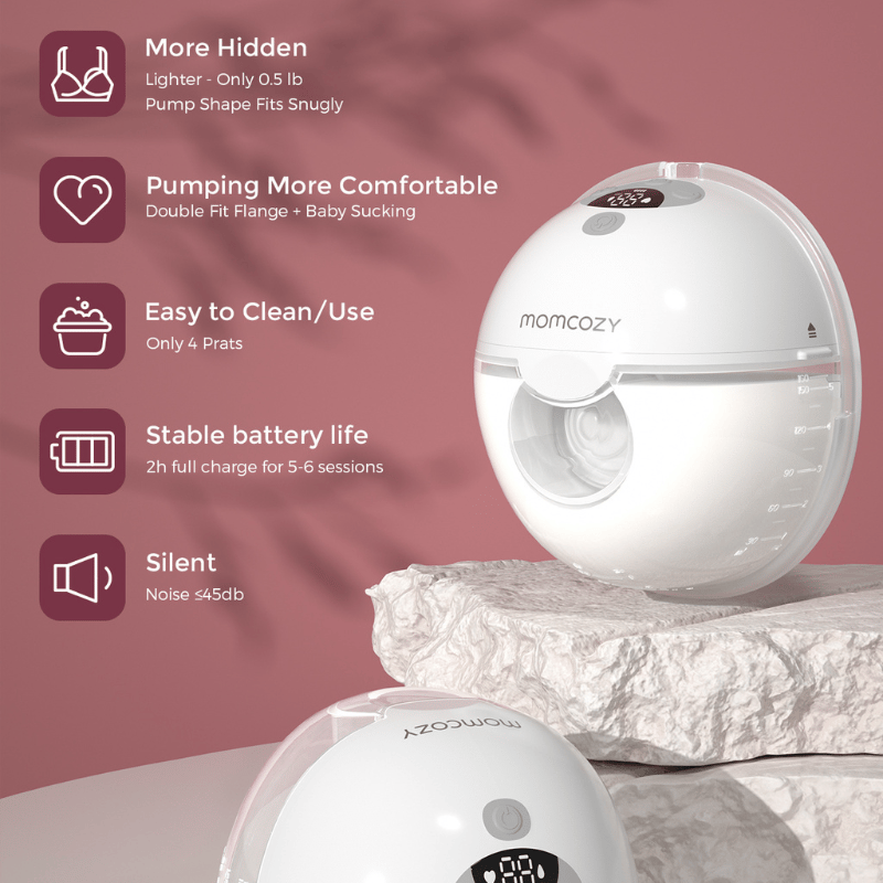 Momcozy M5 Single Pack er en bærbar brystpumpe designet til komfort, med en vandret pumpevinkel der efterligner naturlig amning for blødere sug, bedre mælkeflow og en fuldstændig hands-free, naturlig oplevelse.