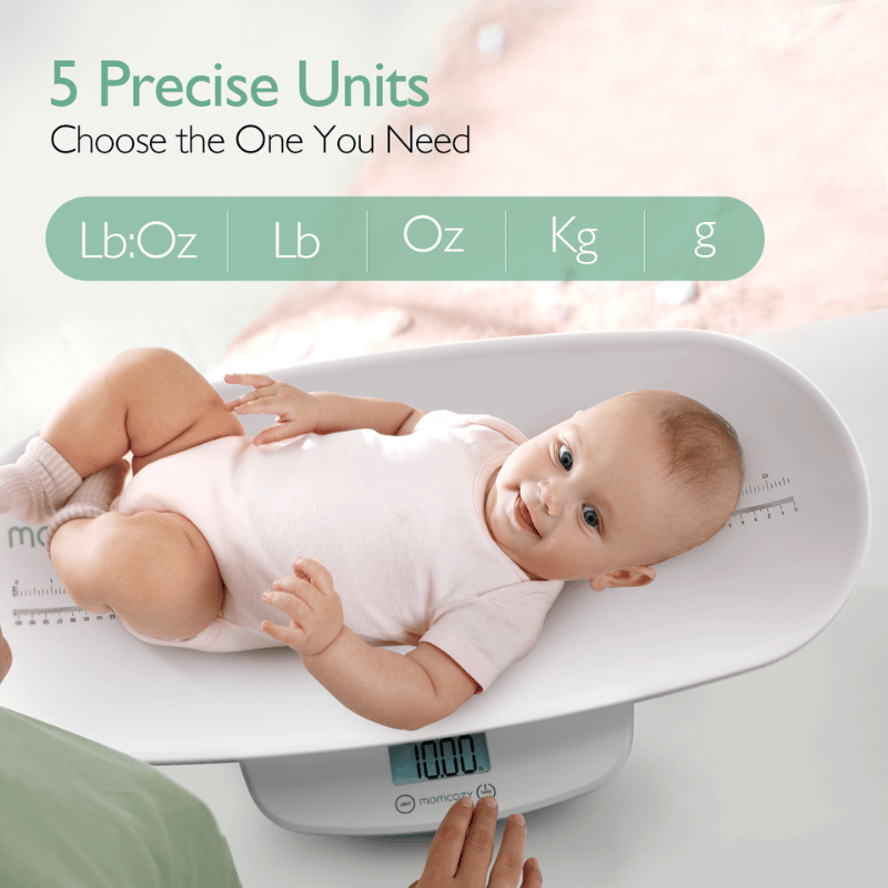 Momcozy Multi-Funktion Vægt & Højde Måleskala giver præcise målinger til spædbørn, småbørn, kæledyr og voksne op til 150 kg. Skift nemt mellem 5 enheder for alsidig, pålidelig overvågning for hele familien.