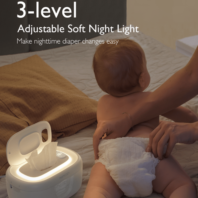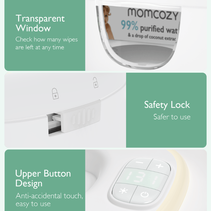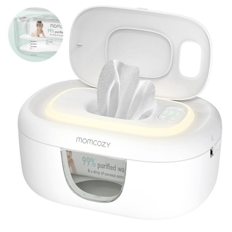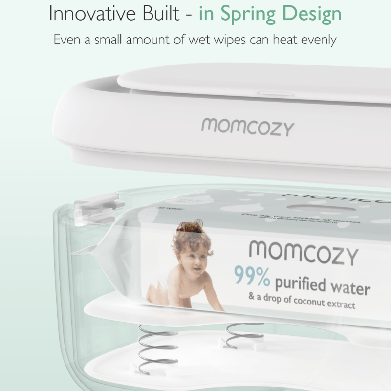 Momcozy Baby Wipe Warmer har et unikt aftageligt designspring for hurtig, jævn opvarmning, så kludene holdes ved den perfekte temperatur - selv med færre klude indeni. Ideel til komfort og bekvemmelighed.