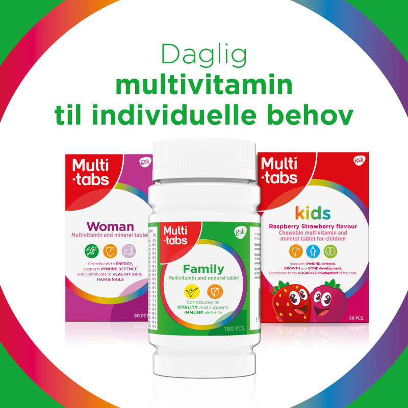 Multi-tabs Family er en multivitamin- og mineraltablet til voksne og unge 11+. Med en tablet om dagen får du et dagligt tilskud af 21 vitaminer og mineraler.