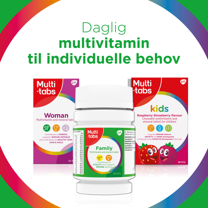 Multi-tabs Family er en multivitamin- og mineraltablet til voksne og unge 11+. Med en tablet om dagen får du et dagligt tilskud af 21 vitaminer og mineraler.